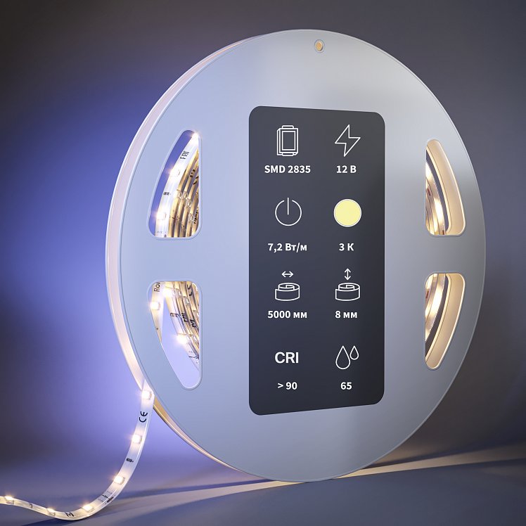 Светодиодная лента Ультра 12В 2835 7,2Вт/м 3000К 5м IP 65 201020