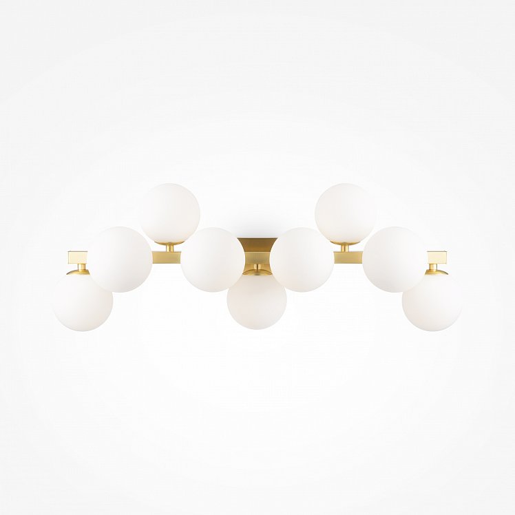 Масштабные скульптурные композиции, образованные многочисленными шарами из выдувного стекла, формируют неповторимый облик светильников серии. На полированных металлических ветвях установлены тонированные плафоны, которые мягко рассеивают и приглушают свет ламп. Модели серии представлены в трех цветах: золото, хром и латунь. Высота подвесных светильников регулируется длиной троса. Серия представлена потолочными, подвесными светильниками, и бра.