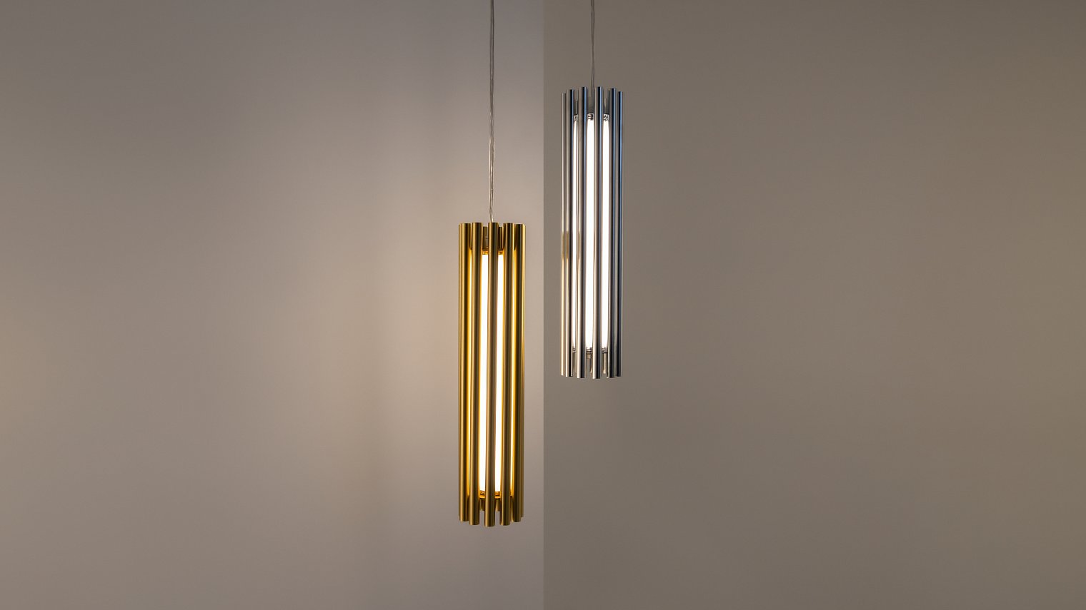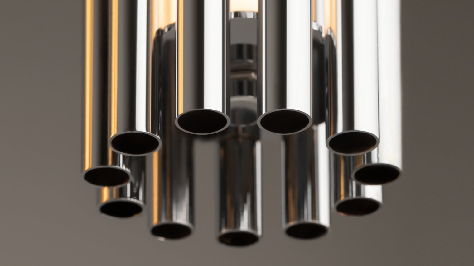 Как намекает название, вдохновением для серии стала стилистика музыкальных инструментов, благодаря чему главным элементом декора стали металлические трубы. Важный светодизайнерский приём — расположение источника света внутри, «в глубине» светильника. Благодаря этому мягкий световой поток пробивается через отверстия между труб и создает на их зеркальной поверхности уникальное сочетание света и бликов.
