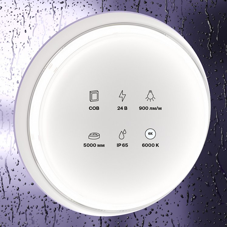 Светодиодная лента 24В COB 12Вт/м 6000K 5м IP65