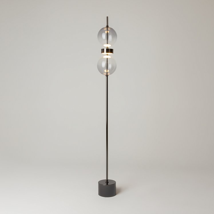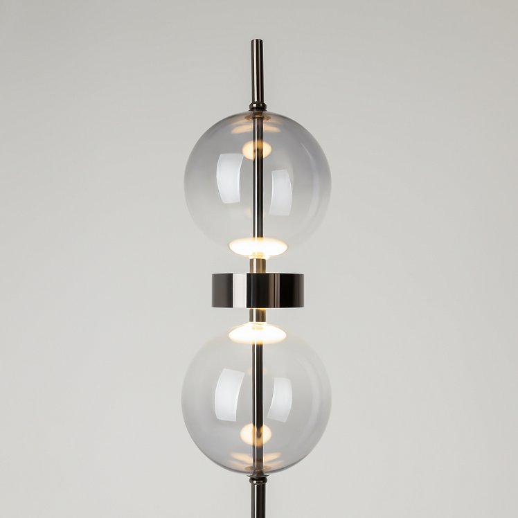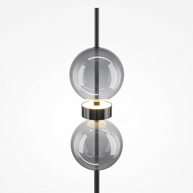 Основу дизайна составляют стеклянные шары с тонированным зеркальным градиентом, которые отражают свет и окружение. Их сияние подчёркивает глянцевая чёрная металлическая арматура. Конструкция светильников продумана так, чтобы максимально скрыть монтажные компоненты: подвесные модели оснащены магнитной потолочной чашей, а настенные бра — магнитным основанием. Мягкое освещение обеспечивает LED-источник (3000К), скрытый за акриловым рассеивателем; он подсвечивает стеклянный шар сверху и снизу, создавая эффект сияния изнутри. В напольных и аккумуляторных светильниках яркость регулируется длительным удержанием кнопки включения. Настенные бра можно устанавливать как вертикально, так и горизонтально