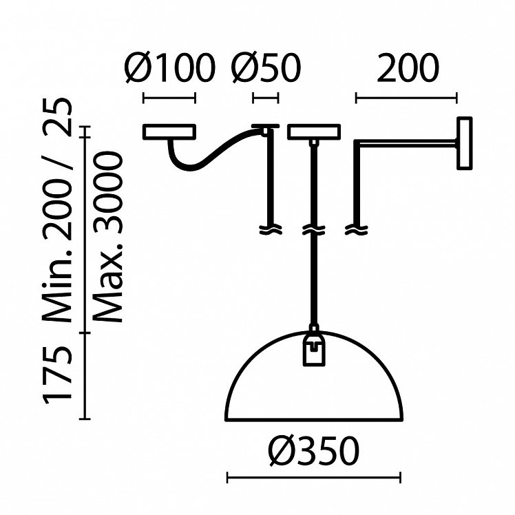 Благодаря дополнительным креплениям в комплекте, светильники можно установить как подвесной так и настенный формат. С помощью потолочной цанги можно разместить абажур в нужной зоне без дополнительного вывода на потолок.