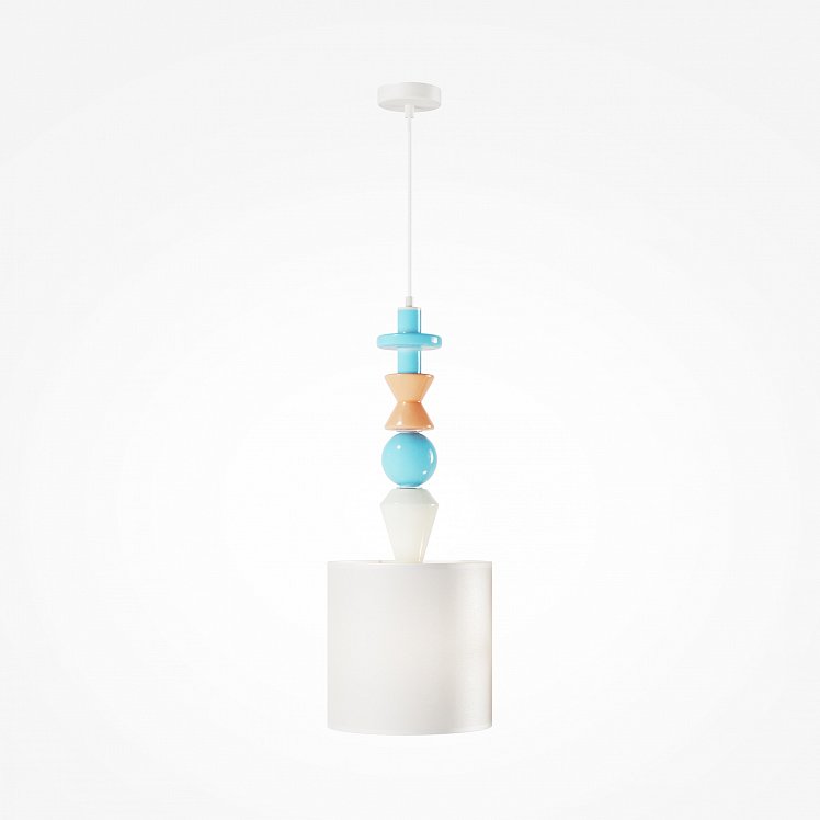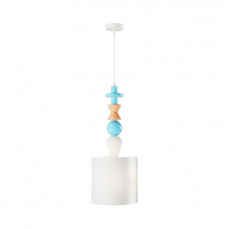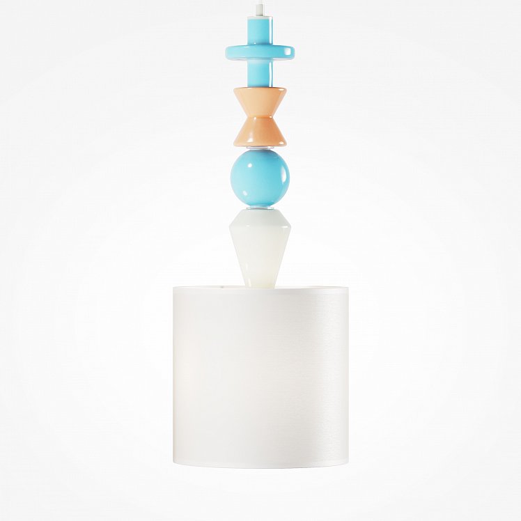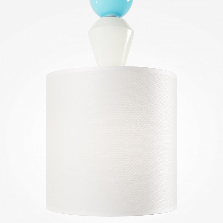 Белый абажур дополняют цветные керамические детали, контрастное сочетание оттенков хорошо смотрится и привлекает внимание. Светильник превратится в оригинальный акцент в интерьере.