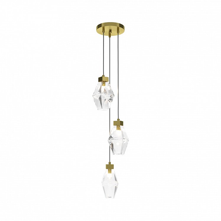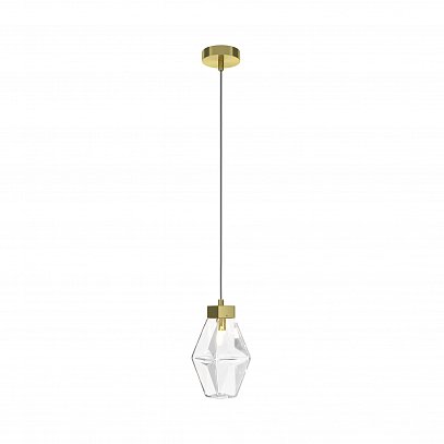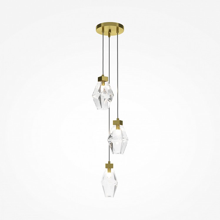 Литое стекло с объемными гранями многократно преломляет световые лучи, создавая праздничные блики. Арматура из металла, окрашенная в золотой цвет, поддерживает настроение модели.