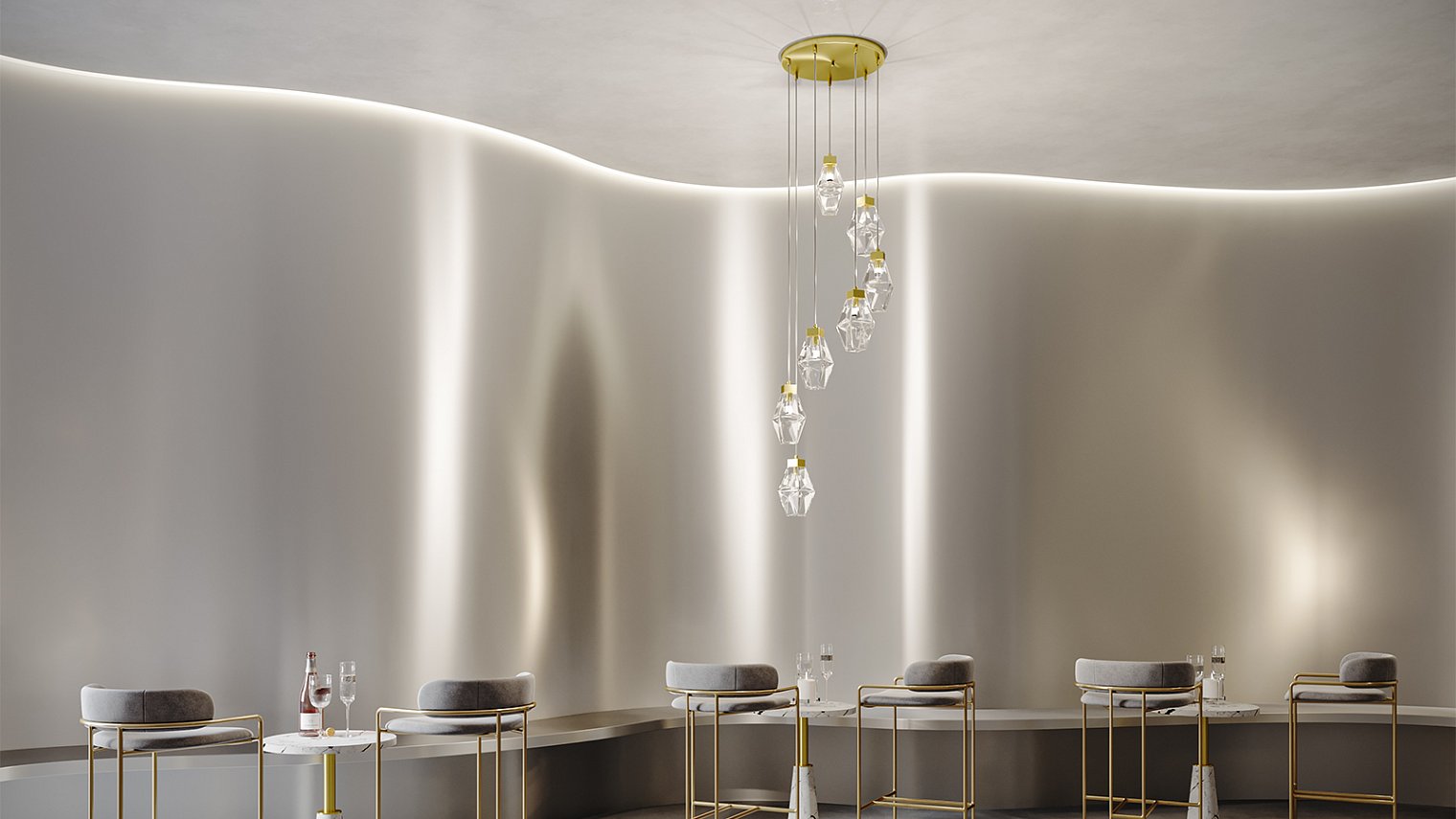 Уже при первом взгляде граненые плафоны напоминают о звонких льдинках в бокалах.