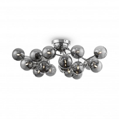 Масштабные скульптурные композиции, образованные многочисленными шарами из выдувного стекла, формируют неповторимый облик светильников серии. На полированных металлических ветвях установлены тонированные плафоны, которые мягко рассеивают и приглушают свет ламп. Модели серии представлены в трех цветах: золото, хром и латунь. Высота подвесных светильников регулируется длиной троса. Серия представлена потолочными, подвесными светильниками, и бра.
