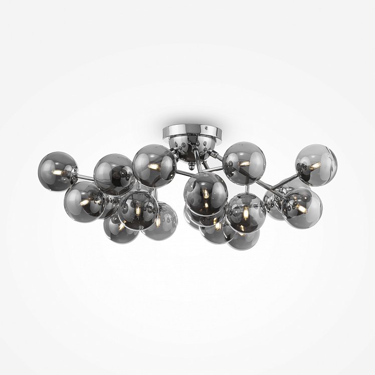 Масштабные скульптурные композиции, образованные многочисленными шарами из выдувного стекла, формируют неповторимый облик светильников серии. На полированных металлических ветвях установлены тонированные плафоны, которые мягко рассеивают и приглушают свет ламп. Модели серии представлены в трех цветах: золото, хром и латунь. Высота подвесных светильников регулируется длиной троса. Серия представлена потолочными, подвесными светильниками, и бра.