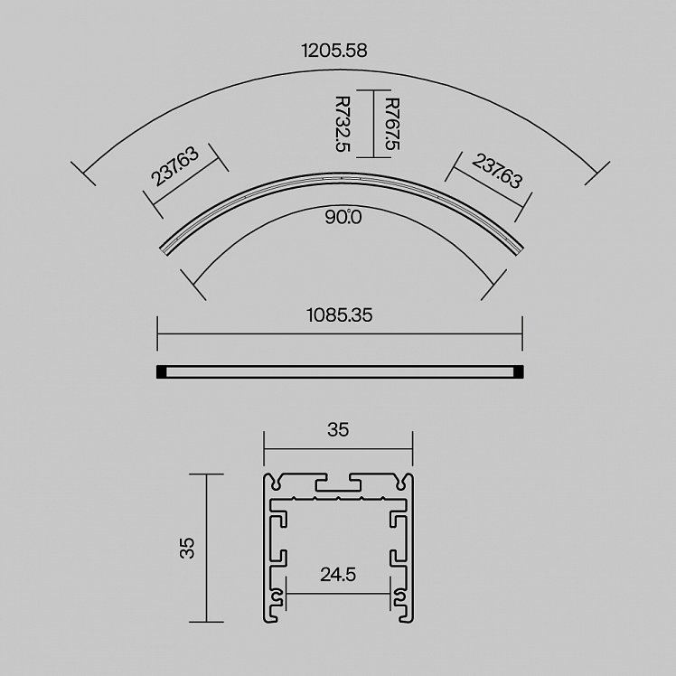 Радиусный профиль 35x35 D1500мм 1/4 круга черный
