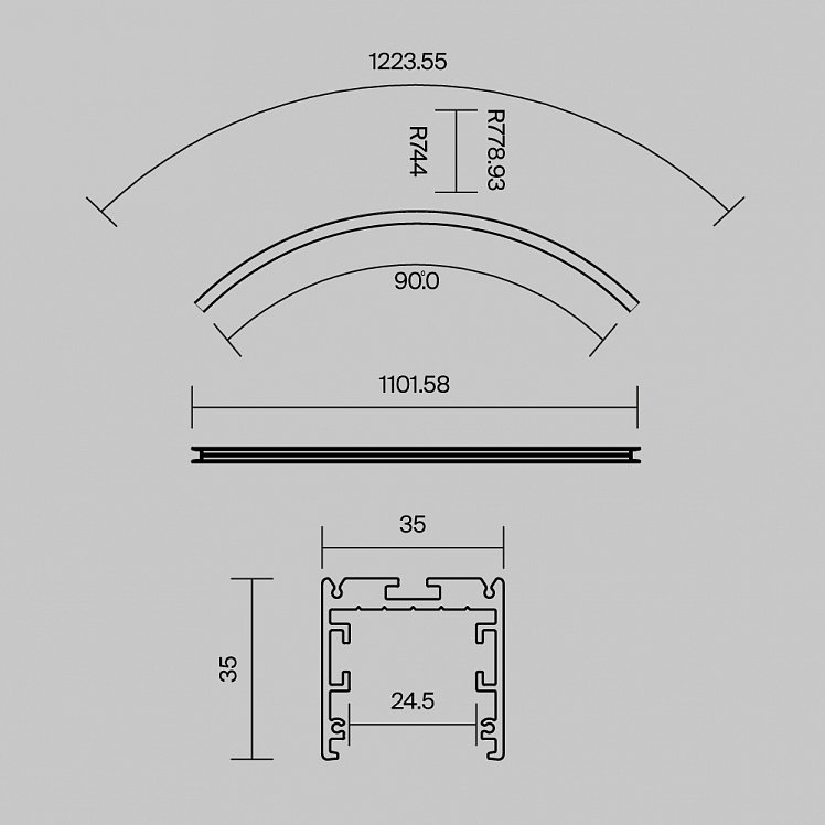 Радиусный профиль 35x35 D1500мм внешний 1/4 круга черный
