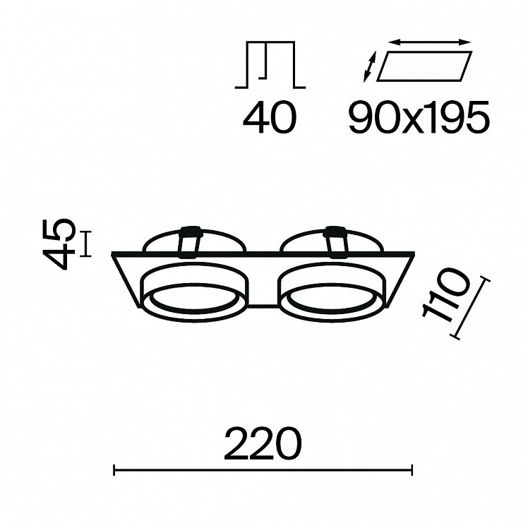 Встраиваемый светильник Обруч / Hoop 2*GX53 12 Вт