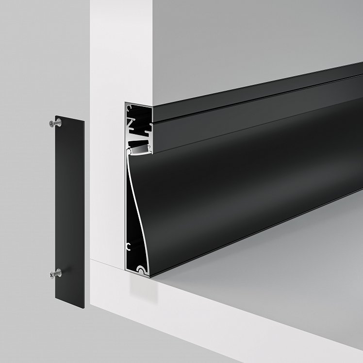 Алюминиевый профиль плинтус 80x18 (Черный, 2 м), ALM-8018-B-2M