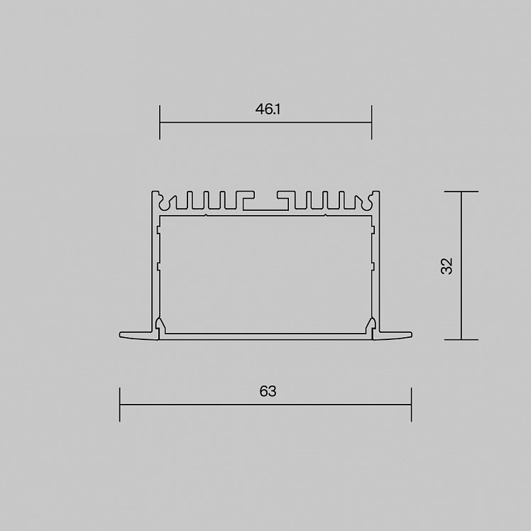 Алюминиевый профиль встраиваемый 63x32 мм (Серебро, 2 м), ALM-6332-S-2M 632004