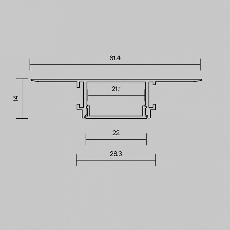 Алюминиевый профиль встраиваемый скрытого монтажа 61x14 (Серебро, 2 м), ALM-6114-S-2M 636019